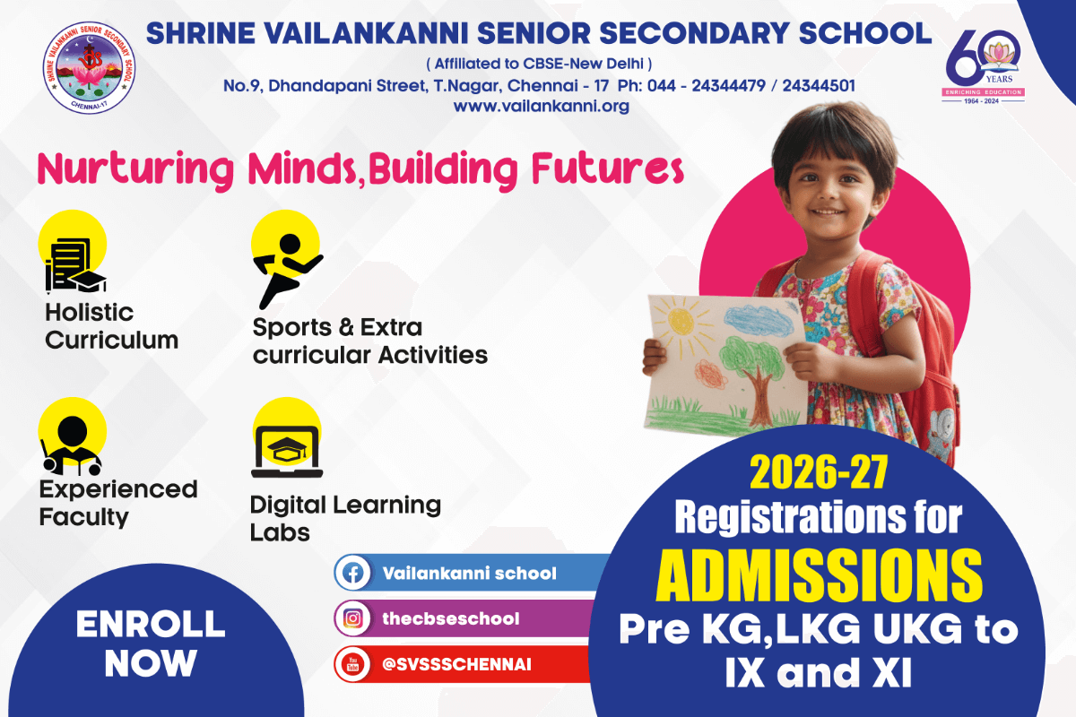 At SVSSS, we pride ourselves on over 60 years of dedication to quality education in Chennai, Tamil Nadu. Our commitment to academic and personal growth ensures every student thrives in a supportive environment.